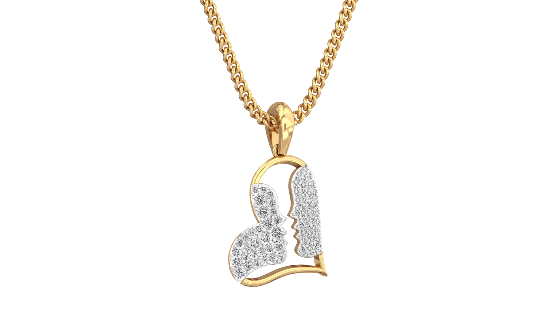 14K Solid Gold Necklace Pendant with Heart and Cross Diamond Charm Jewelry